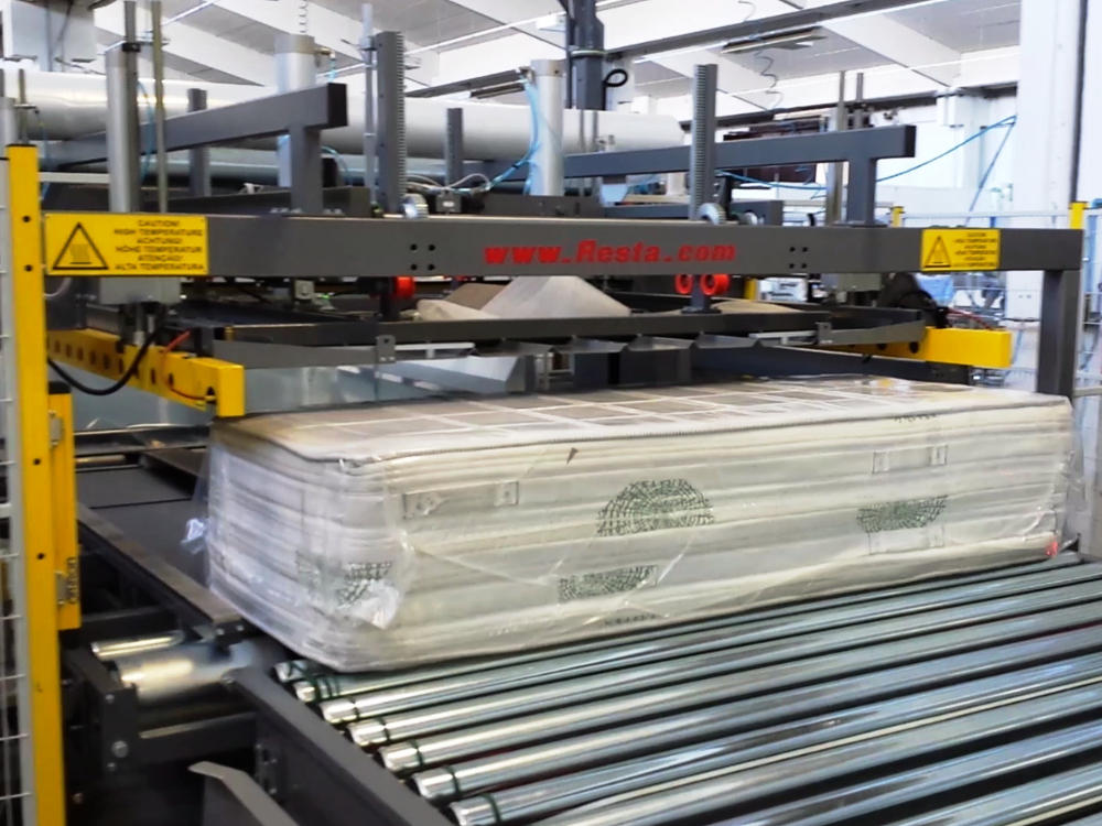 The automatic wrapping machine model Resta H288 RMT is a unit expressly engineered to wrap the mattresses approaching the final part of a mattress production line.