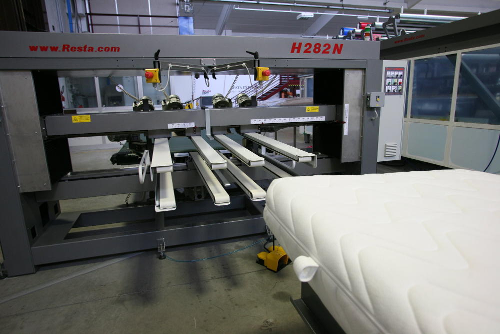 The Resta H282 N filling machine allows quickly bagging any type of mattress such as spring, resin and latex mattresses. Eight towing elements with wide straps ensure perfect insertion of the mattress inside the bag that wraps it. A motorized conveyor at the machine inlet ensures perfect mattress insertion at the straps mouth.